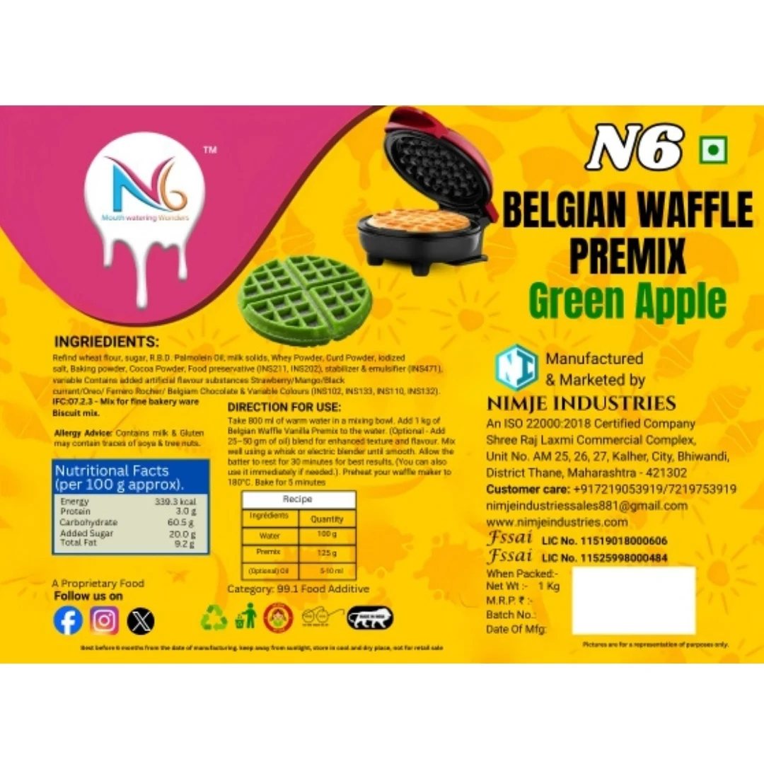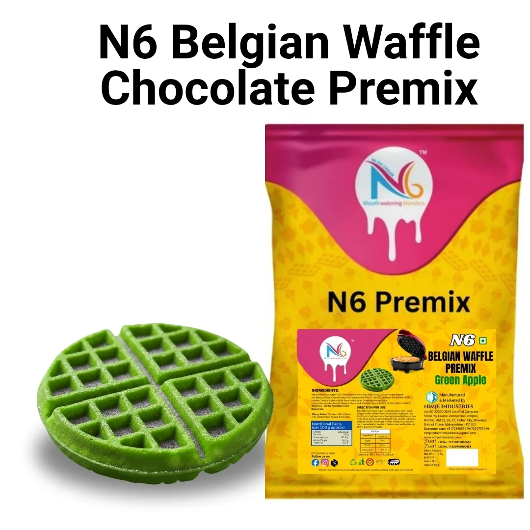 N6 Belgian Waffle Premix – Green Apple Flavor (1kg) | Easy-to-Bake Eggless Waffle Mix for Crispy & Fluffy Waffles